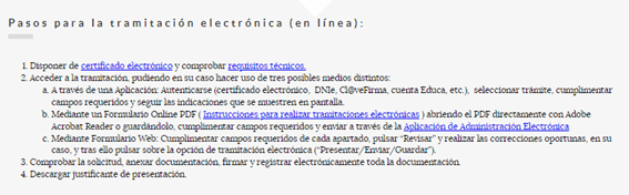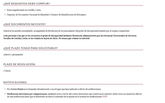 Bajando la página, se muestran los requisitos a cumplir, documentación, plazo para solicitarlo, plazo de resolución y cómo queremos que realicen las notificaciones.