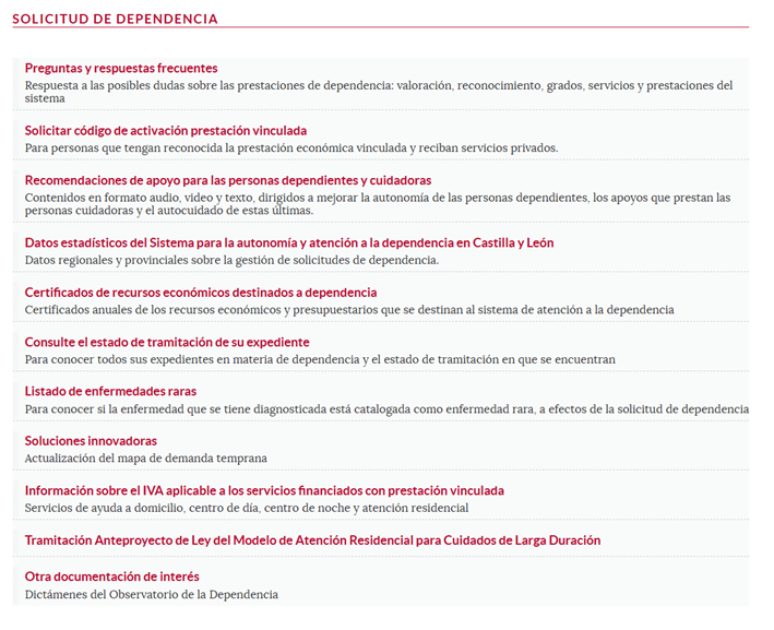 Al final, en el caso de mi CCAA, nos da un apartado en que indica “Información sobre Dependencia” con estas opciones: